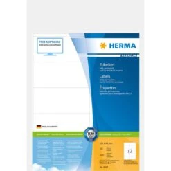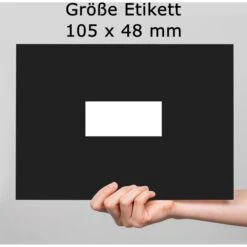 sonstiges: selbstklebend, schnittgestanzt, spitze Ecken, Rand am oberen und unteren Ende, chlorfrei gebleichtes und holzfreies Papier, schnell und sicher haftend, auch auf feuchten oder kühlen Oberflächen, hoher Weißegrad, garantiert staufrei (störungsfreies Drucken auf allen Laser- und Inkjetdruckern – bestätigt durch TÜV Süd), Highspeed-Druck möglich
