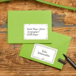 sonstiges: selbstklebend, schnittgestanzt, spitze Ecken, Rand am oberen und unteren Ende, chlorfrei gebleichtes und holzfreies Papier, schnell und sicher haftend, auch auf feuchten oder kühlen Oberflächen, hoher Weißegrad, garantiert staufrei (störungsfreies Drucken auf allen Laser- und Inkjetdruckern – bestätigt durch TÜV Süd), Highspeed-Druck möglich