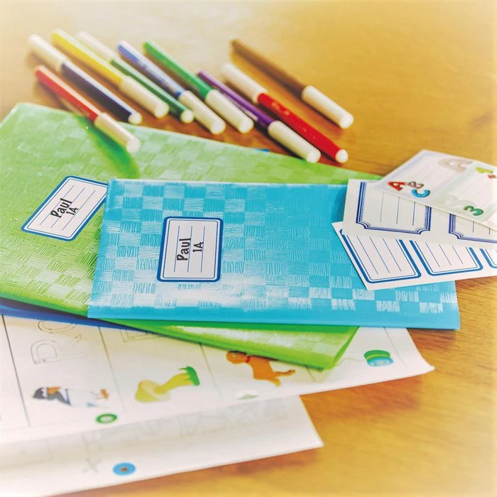 sonstiges: selbstklebend, zur Handbeschriftung, zum Verschönern, Markieren, Kennzeichnen und Personalisieren von Schulbüchern und -heften etc. geeignet