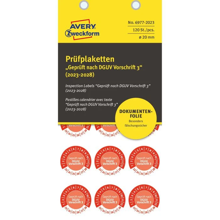 selbstklebend, besonders widerstandsfähig, wetterfest, temperaturbeständig, wasserfest und schmutzabweisend, resistent gegen Öl, Reinigungs-, Desinfektions- und Lösemittel, ideal zur Prüfkennzeichnung von elektronischen oder nicht-elektronischen Gegenständen